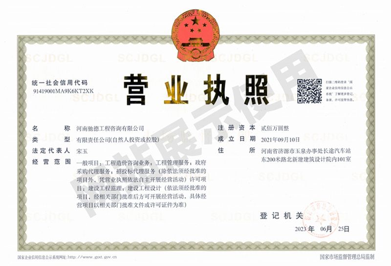 由于公司发展需要,现将“济源赢海工程咨询有限公司”从2023年06月25日变更登记为“河南驰德工程咨询有限公司”。