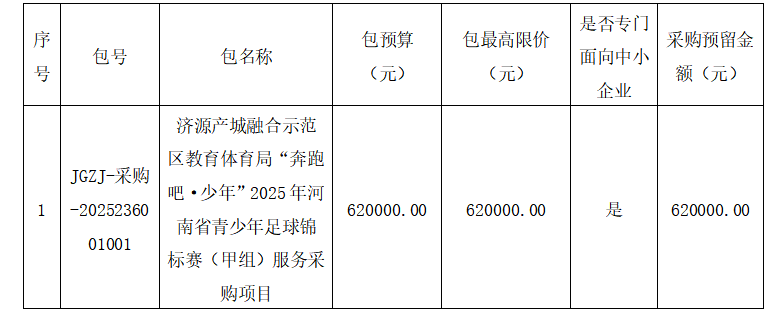 2.项目名称:济源产城融合示范区教育体育局“奔跑吧·少年”2025年河南省青少年足球锦标赛(甲组)服务采购项目