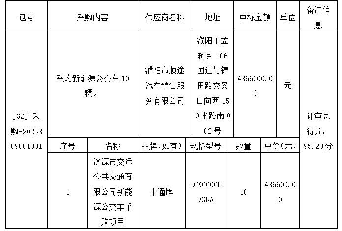 2、采购项目名称:济源市交运公共交通有限公司新能源公交车采购项目